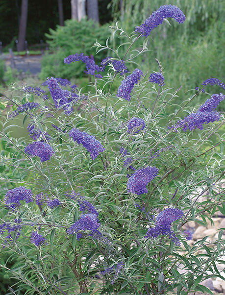 Large bright purple flower panicles bloom from spring through mid-fall.