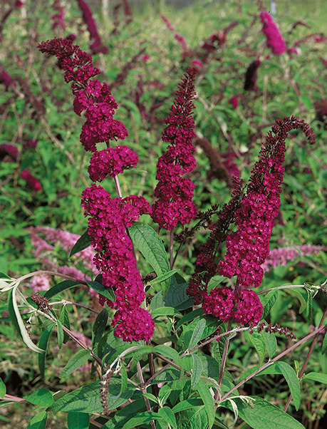 Fragrant, rich purple-red flowers on up to 20” long panicles.
