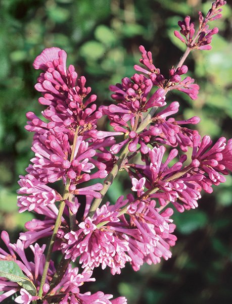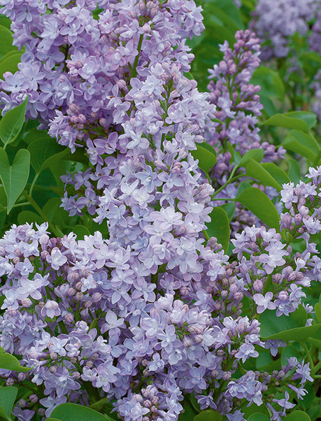 This upright, compact lilac blooms later than others, extending the season with deep purple buds that reveal clusters of highly fragrant, lavender-blue flowers. Foliage is burgundy-tinged in fall.