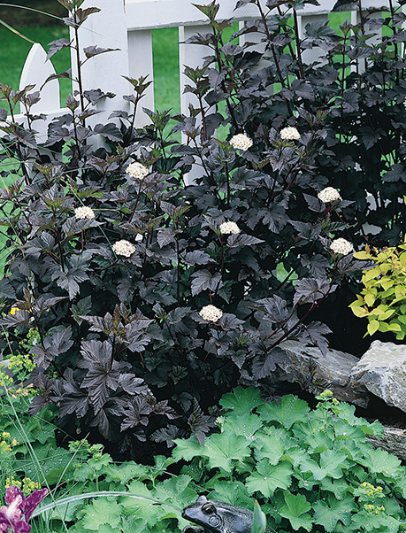 This unquie Ninebark has foliage that emerges yellow green but matures into bright, deep red that last all season long. White flowers bloom in spring to add interest to this fast growing shrub.