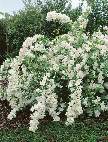 Deciduous shrub that grow to only 5-8’ tall, Features fragrant double white flowers that bloom profusely in late spring.
