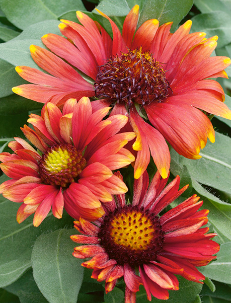 With a shorter, compact size and uniform habit setting it apart from other varieties, this eye-catching perennial produces masses of large bright crimson red flowers, some with yellow tips.