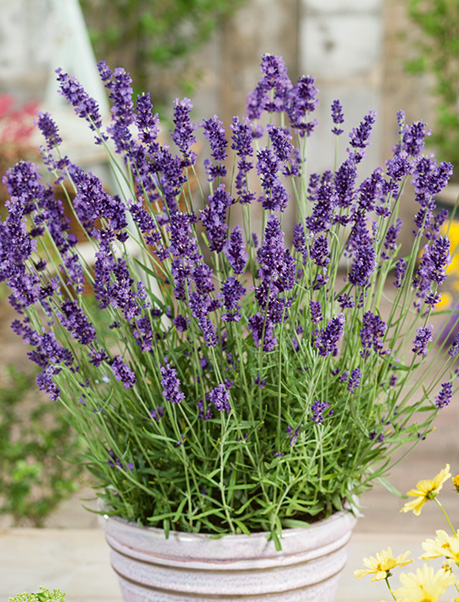Deep purple flower spikes above mounds of gray-green foliage provide great color to the front of shrub borders or spotted into the rock garden.