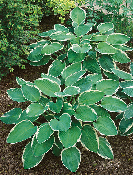Robust foliage which remains attractive straight through to the first frost! Rich blue-green leaves have a creamy yellow border that gradually fades to white.
